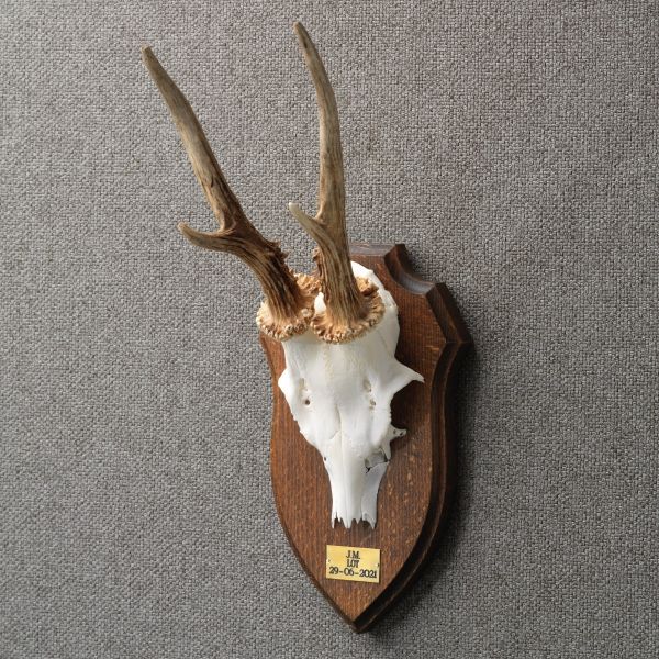 De opgezette reebok met zijn majestueuze gewei is niet alleen een visueel aantrekkelijke toevoeging aan elk interieur, maar ook een gespreksonderwerp dat nieuwsgierigheid en bewondering opwekt. Het is een kunstwerk dat de vaardigheid van taxidermisten tentoonstelt en de natuurlijke pracht van de Capreolus capreolus viert. Dit stuk is een waardevolle aanvulling voor liefhebbers van de natuur en kunst, en biedt een unieke kans om de elegantie van de reebok in huis te halen.