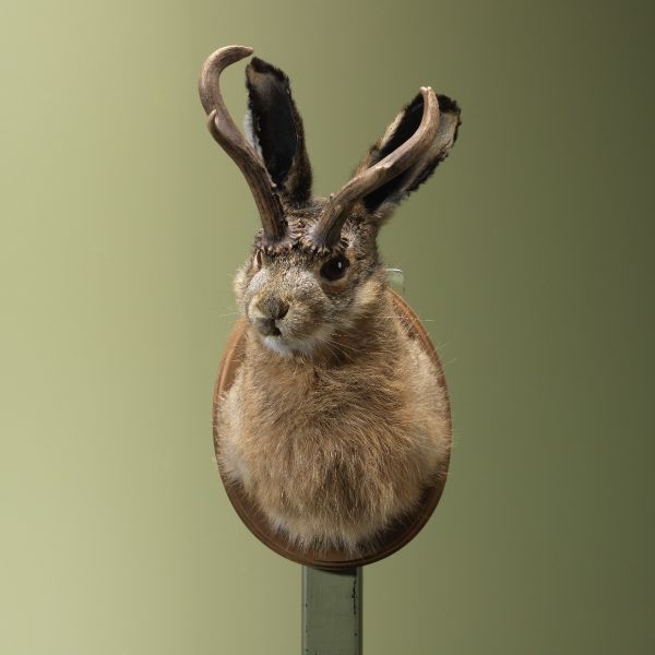 De opgezette haas, met de Latijnse naam Lepus europaeus, is een prachtig voorbeeld van taxidermie. Deze Europese haas is een van de grotere leden van de haasachtigen en staat bekend om zijn lange oren en krachtige achterpoten. In het wild bewoont de haas open landschappen zoals velden en weiden, waar hij zich voedt met grassen en kruiden. Wat deze opgezette haas zo bijzonder maakt, is de aandacht voor detail waarmee de taxidermist de natuurlijke uitstraling van het dier heeft weten te behouden. De vacht glanst alsof het dier zojuist door het veld heeft gerend, en de ogen lijken te stralen van leven.