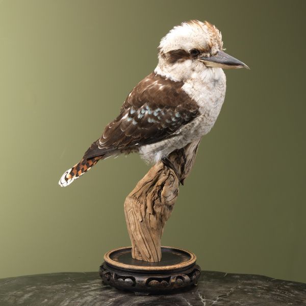 Een leuk feitje over de Kookaburra is dat hij de grootste ijsvogel ter wereld is. Met zijn opvallende verenkleed en imposante snavel is het een geliefd dier onder vogelliefhebbers en taxidermisten.