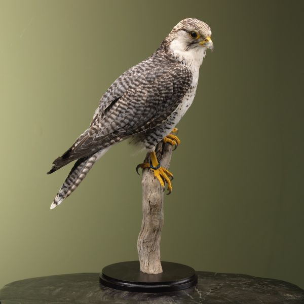 Een opgezette 4203 Hybride Valk is een unieke combinatie van de Latijnse namen Falco peregrinus en Falco rusticolus. Deze prachtige vogel staat bekend om zijn snelheid en behendigheid in de lucht. Met een gemiddelde vleugelspanwijdte van ongeveer 1 meter is de 4203 Hybride Valk een indrukwekkende verschijning.
