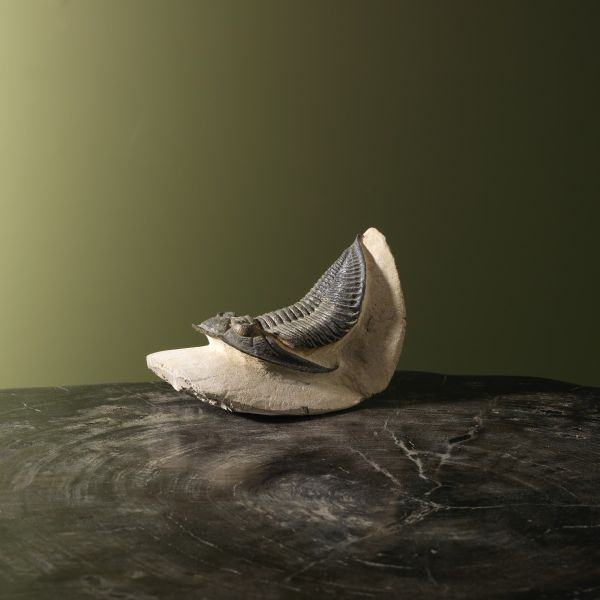 Deze opgezette trilobiet is gemaakt met behulp van de techniek van taxidermie, waarbij het fossiel zorgvuldig geconserveerd en tentoongesteld wordt. Taxidermy is een kunstvorm die vereist dat de dieren op een natuurgetrouwe en esthetische manier worden geprepareerd, zodat ze hun oorspronkelijke schoonheid behouden.