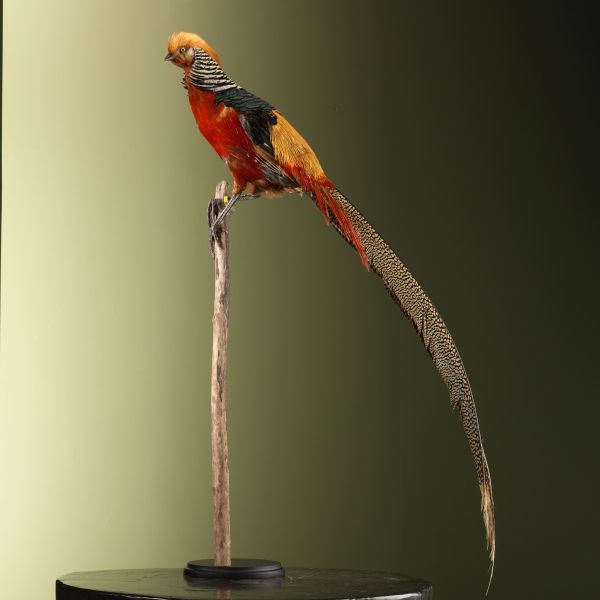 Een leuk feitje over de Goudfazant is dat het mannetje van deze soort vaak wordt beschouwd als een van de mooiste vogels ter wereld vanwege zijn indrukwekkende verenpracht. Dit heeft ertoe geleid dat de Goudfazant een geliefd onderwerp is in de wereld van taxidermie en taxidermy, waarbij dieren opgezet worden om ze te conserveren en tentoon te stellen.